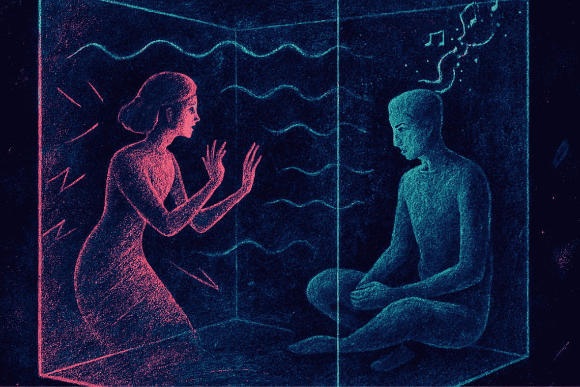 Él es ciego frente a espectadores, no sospecha ni da sospechas. Sabe que los sordos ven, reposa en su mente una melodía que lo aleja de lo mundano, la guarda solo para él. Es posible que mañana ya no sean sordos y que suene una melodía marciana en altavoz. Pero si es eso es posible, no se extrañen que siga siendo un error, porque aunque lo tengan absolutamente todo, no dejan de verse como el silencio de los dos.